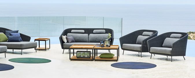 Mega is a unique series of furniture designed by ByKato. The stringent design and calm Scandinavian colours create a very urban look that characterizes the series. Mega sofa and chairs are made in Cane-line Weave® and therefore, ideal for outdoor use in any climate as the material is temperature- and UV- resistant.