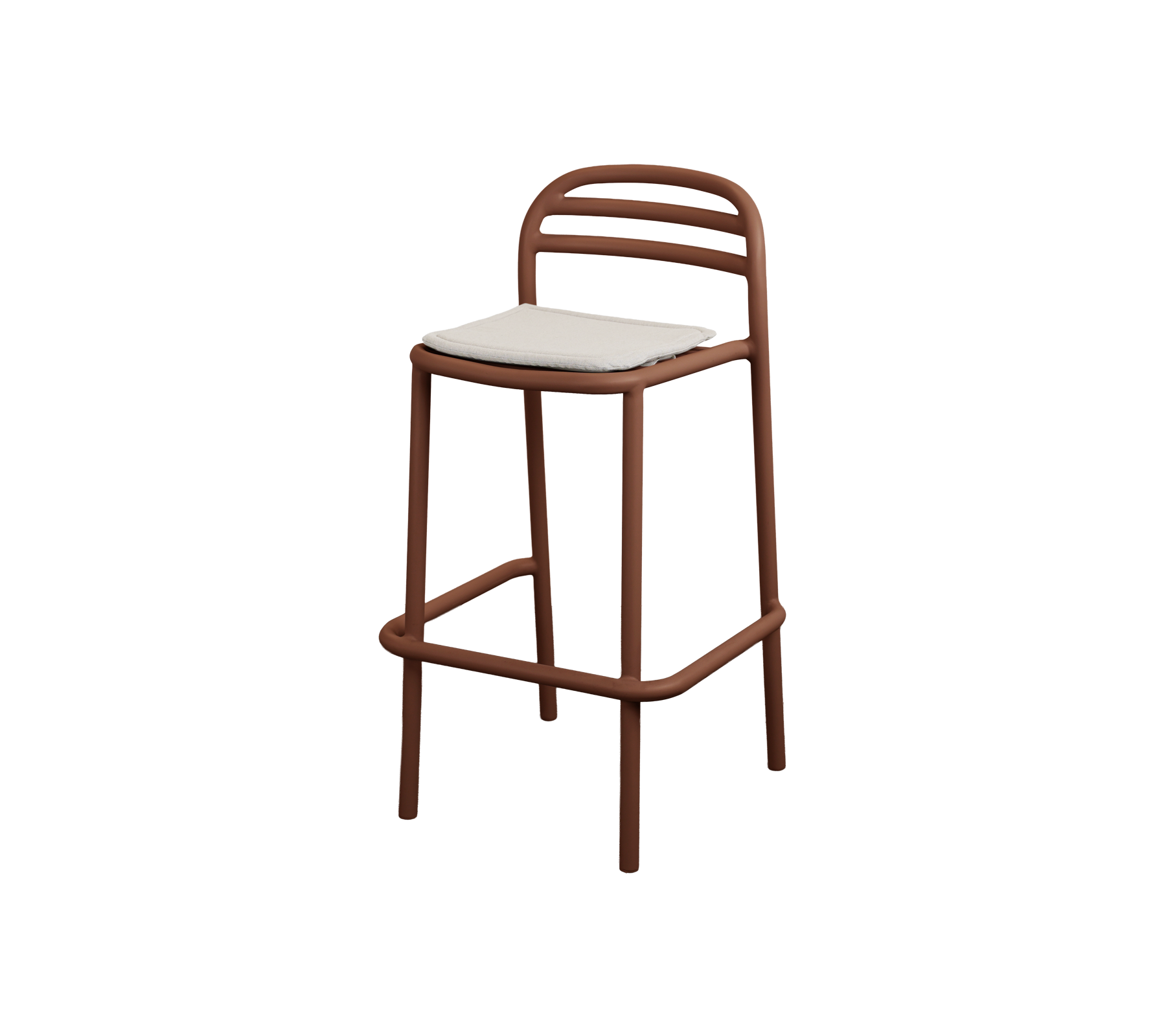 The Bliss bar chair by Foersom & Hiort-Lorenzen MDD brings a simple, elevated aesthetic to any outdoor setting. Its raised seat height makes it ideal for bar areas, kitchen islands and café counters, while the stackable construction ensures easy storage. With its slim profile, crafted from durable, powder-coated aluminium, the chair combines visual lightness with reliable support. It is designed to withstand both private outdoor use and the demands of high-traffic hospitality spaces.