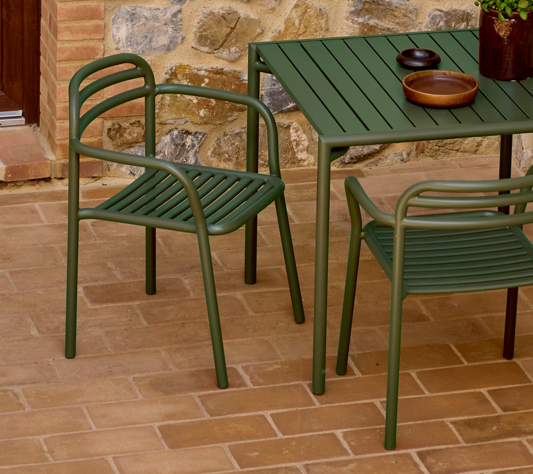 Designed by Foersom & Hiort-Lorenzen MDD, the Bliss dining table with two armrest chairs brings together simplicity and urban design for an inviting outdoor setup. This compact arrangement is perfect for small patios, balconies, and cosy café corners, providing a welcoming space for relaxed dining and great intimate conversations. Made from durable, powder-coated aluminium, the Bliss table and chairs are lightweight - designed for low-maintenance and flexible rearrangement. For larger occasions, the optional Bliss dining table extension module allows you to expand and customize the table to meet your requirements, adapting to seat more guests. The armrests on the chairs add a touch of extra comfort, ideal for unwinding over a meal. Available in classic, timeless colours, Bliss complements a variety of décor styles, offering refined simplicity and lasting functionality for any space, season after season.