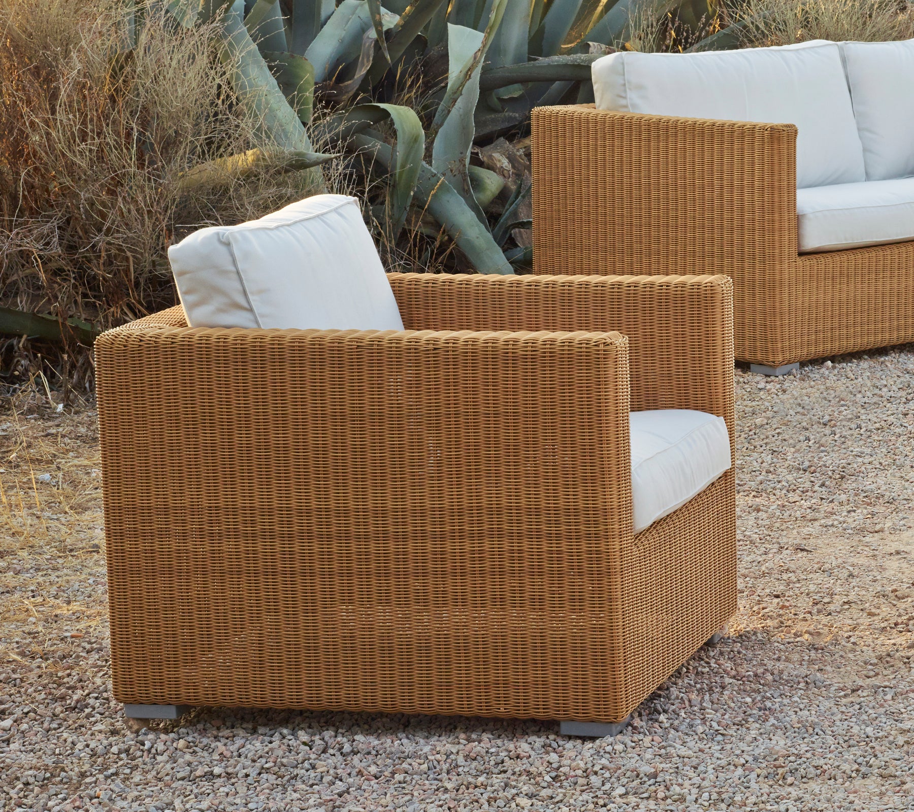 Chester lounge chair has very modern, timeless and sharp design lines. The lounge chair is a good lounge chair for the elegant terrace, the trendy balcony or as a single chair in a corner of the sunroom. It is manufactured in Cane-line Weave®, which is an incredible weather resistant material that does not fade in sunlight.