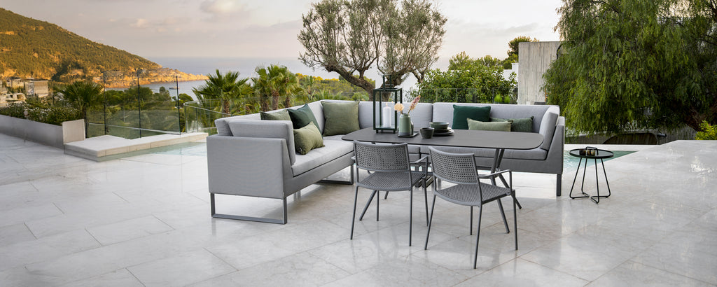 Flex dining and lounge sofas are ideal for outdoor use as they can be used both for relaxation and as a bench for the dining table. With its unique design and function, you can change the way the furniture is used in just a few seconds - from being a regular lounge area to a dining area where you can enjoy dinner. Flex is the essence of “life made comfortable” - you decide the function yourself. Flex is a modular system, where you can design your own lounge area that matches your neeeds and wishes perfectly.