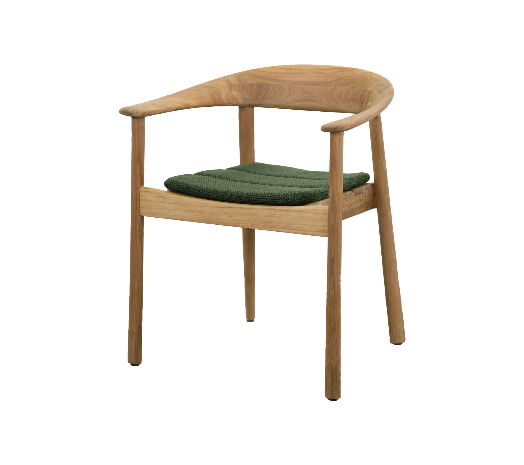 Equally suited around the dining table outdoors or as a stand-alone design piece indoors, the armchair’s minimalist expression is complemented by rounded armrests that offer both visual softness and relaxed comfort. The armchair can be paired with the optional Majestic seat cushion for an added layer of comfort.