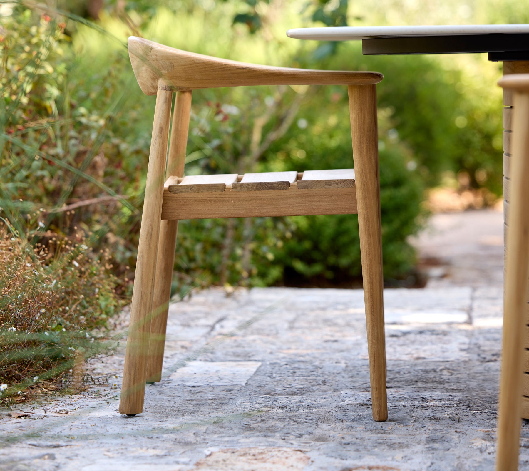 The teak will develop a graceful silver-grey patina over time if left untreated. To preserve the original golden-brown colour through the seasons, we recommend using Cane-line Teak Care products.
