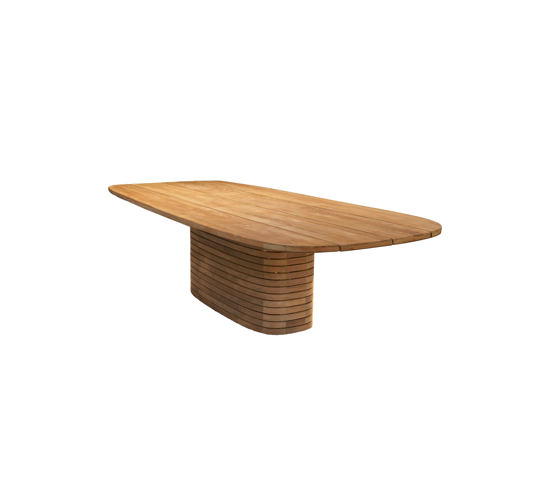 With room for everyone, the large, oval Mellow dining table invites you to enjoy the outdoors. Designed by Cane-line Design, it balances soft, organic lines with a sculptural, grounding expression. The 300x130 cm tabletop with softly rounded corners rests on a distinctive pillar base, offering a generous setting for both festive occasions and everyday dinners - making the table a natural gathering point in any refined outdoor space.