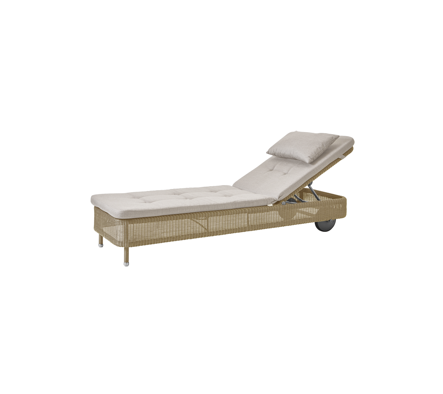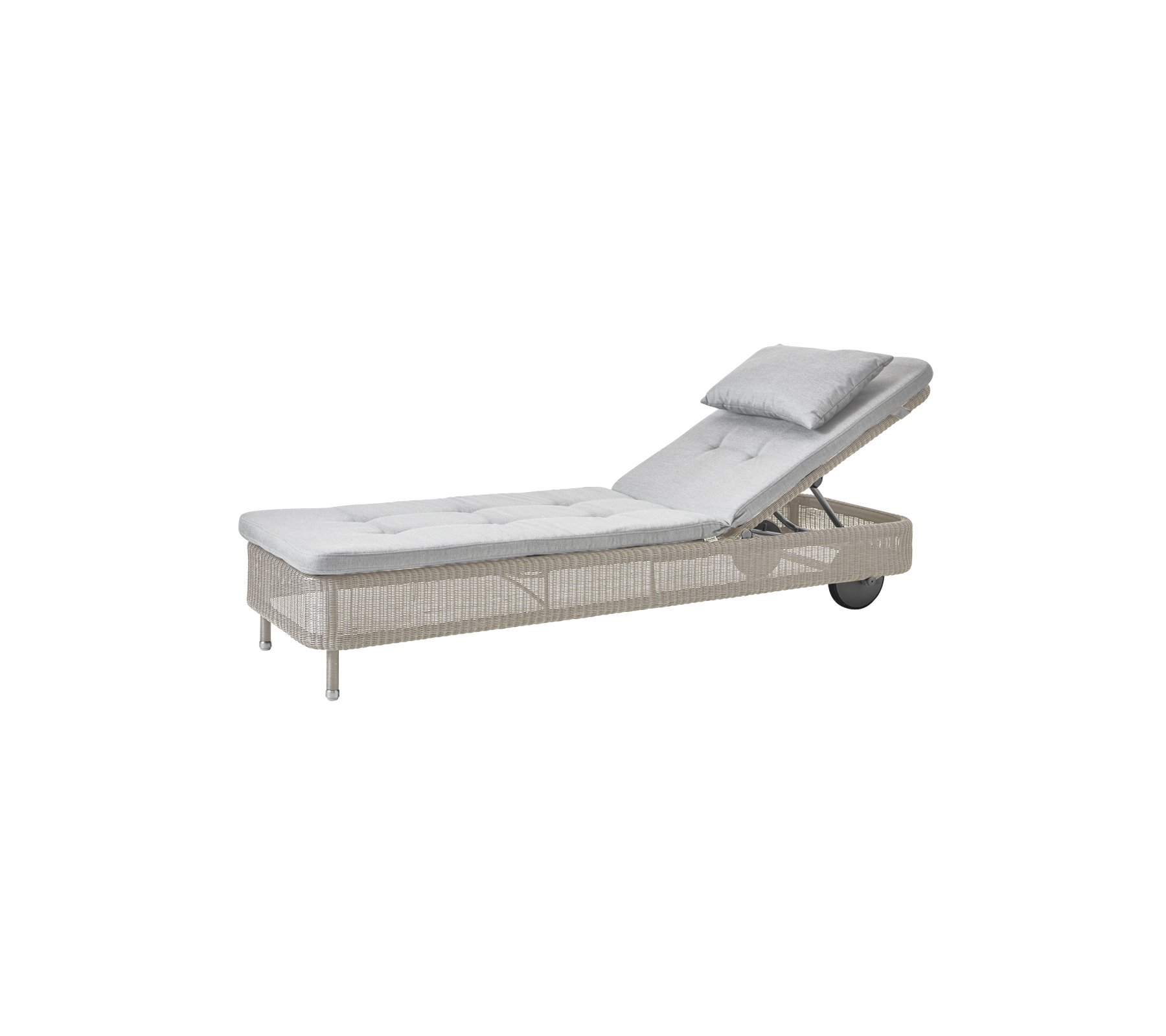 Presley is a classic sunbed in Cane-line Weave®. The Presley sunbed has an adjustable backrest that can be adjusted in many positions so you can sit comfortably or lie down and enjoy the sun's rays. The sunbed has, among other things, a completely horizontal position, so that it is comfortable to lie both on the back and on the stomach. The sunbed has wheels and is therefore easy to move around on the terrace or in the garden.